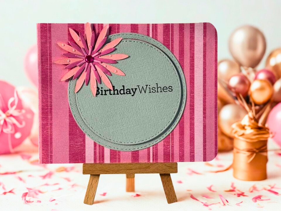 Pink and Grey Birthday Wishes Card