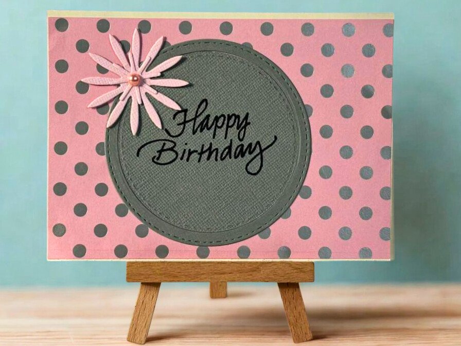 Pink and Grey Happy Birthday Card