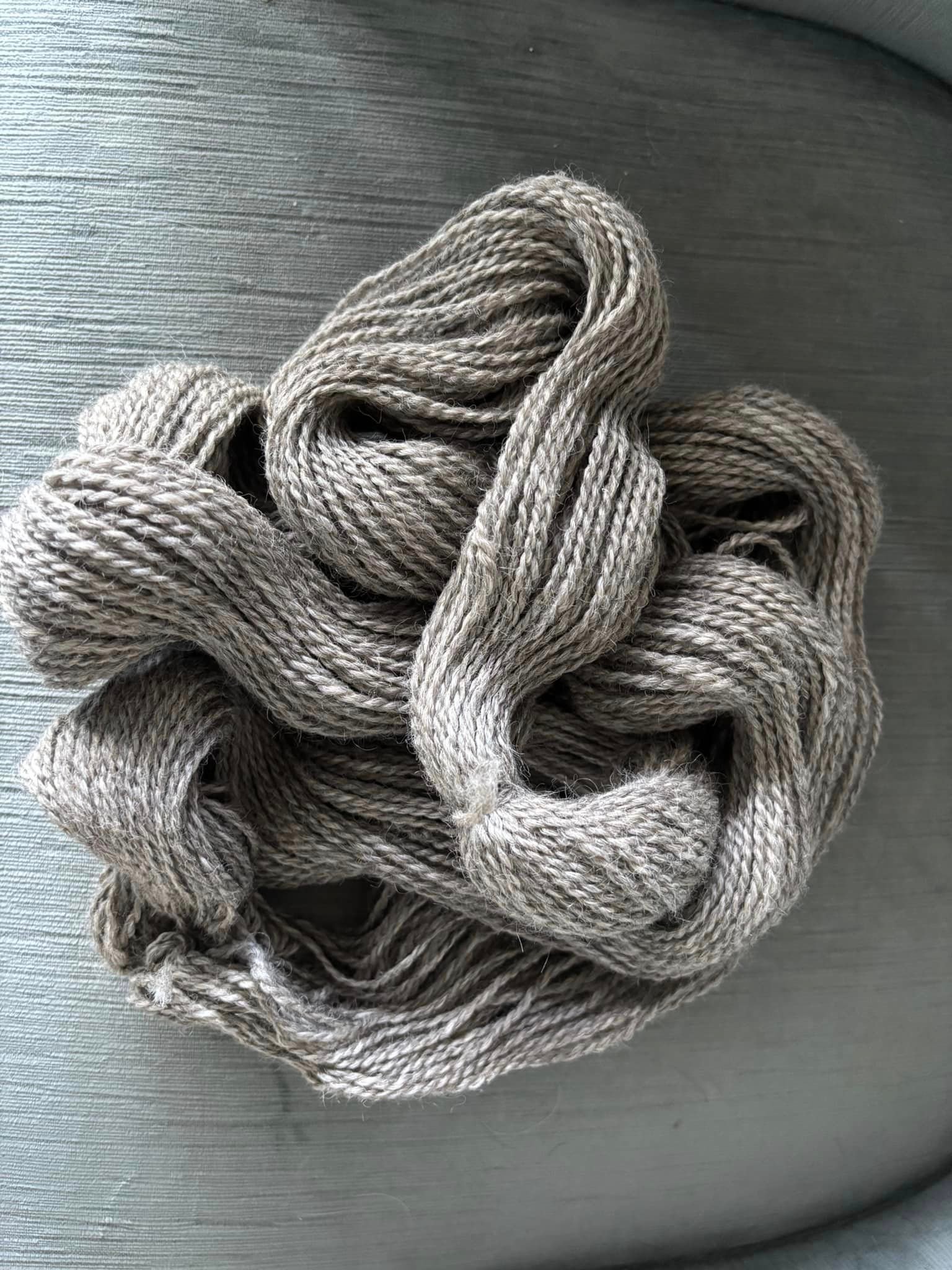 🌿 100% Romney Wool Yarn – Natural Grey Worsted Weight – 220 yds / 2-Ply Skein
